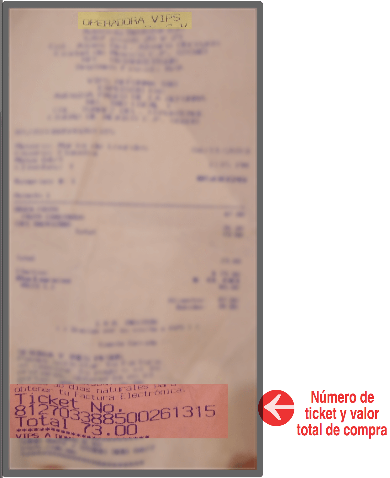 Ubique dónde se encuentra el número de ticket y valor de la compra