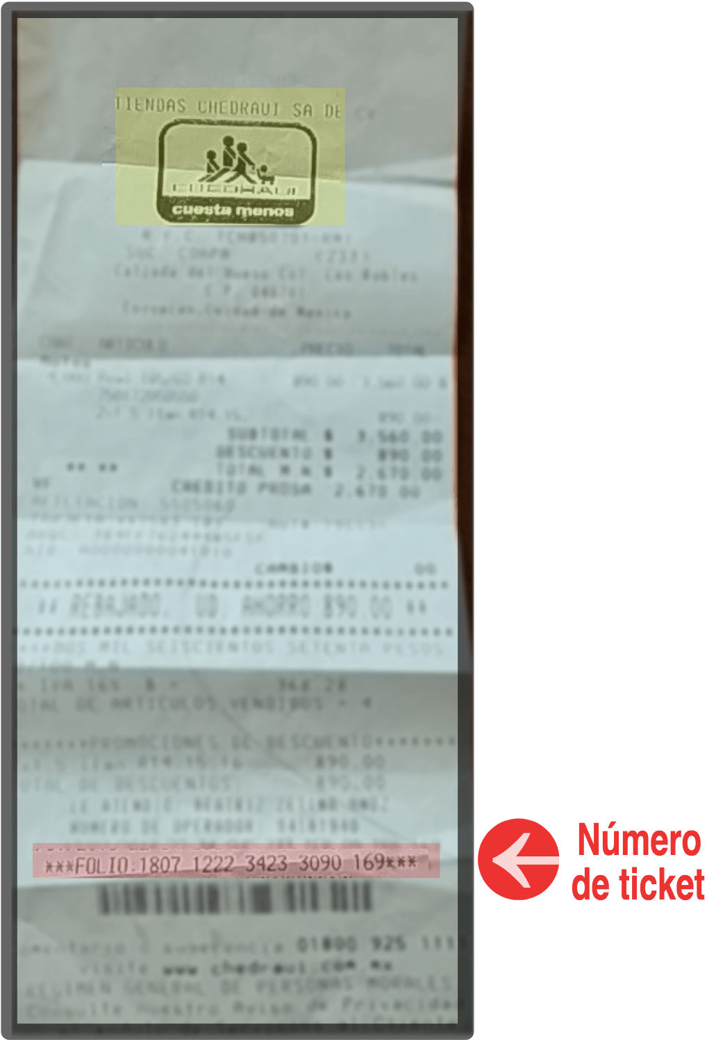 Ubique el número de ticket en el recibo